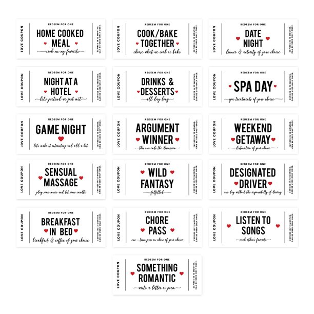 Andaz Press Red Heart Love Coupons For Him Her Boyfriend Girlfriend Unique Funny Romantic Valentines Day 16 Pack Walmart Com